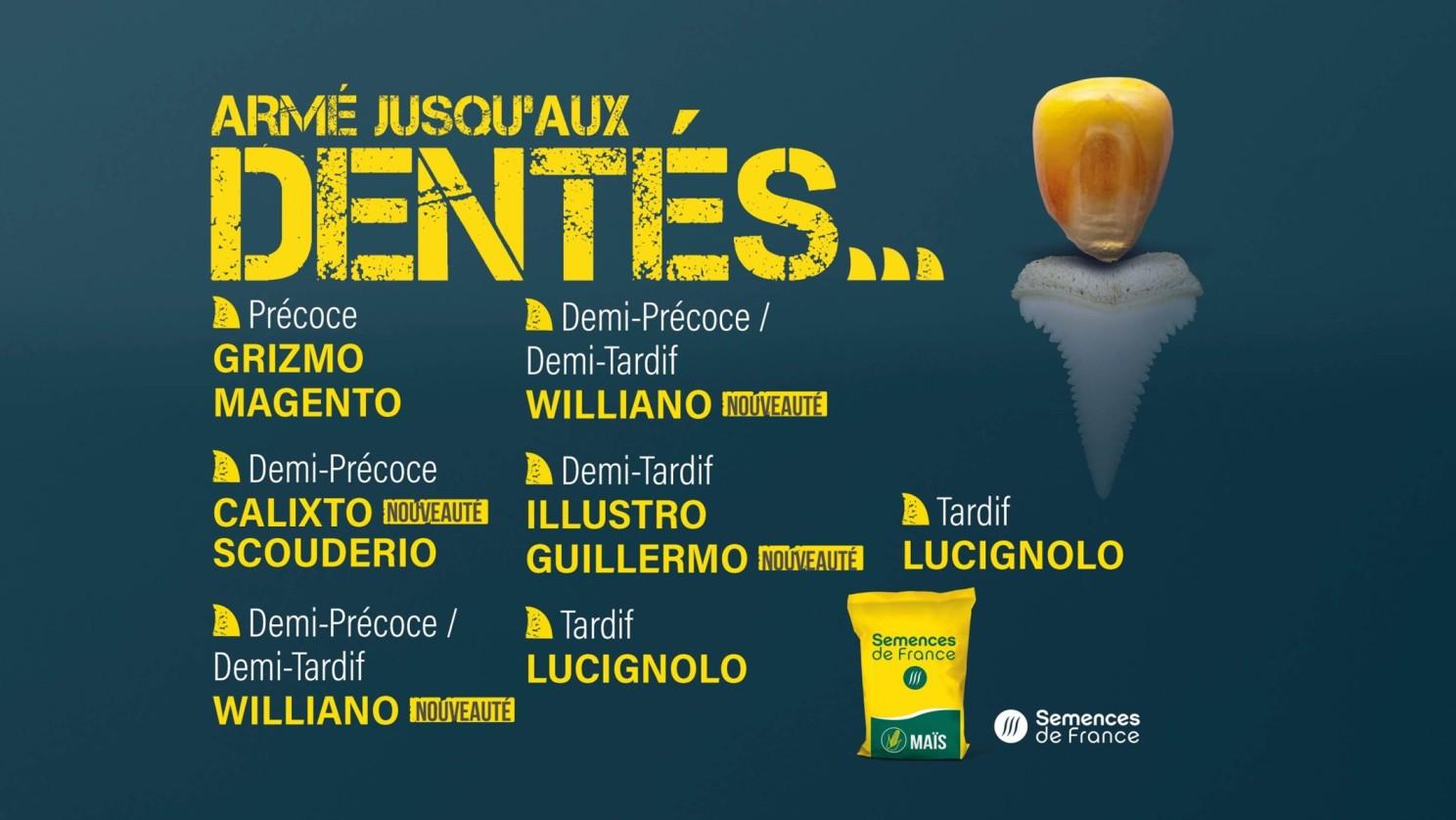 Découvrez les nouveautés : CALIXTO – WILLIANO – GUILLERMO et l’ensemble de la gamme de nos maïs dentés sur le site Semence de de France